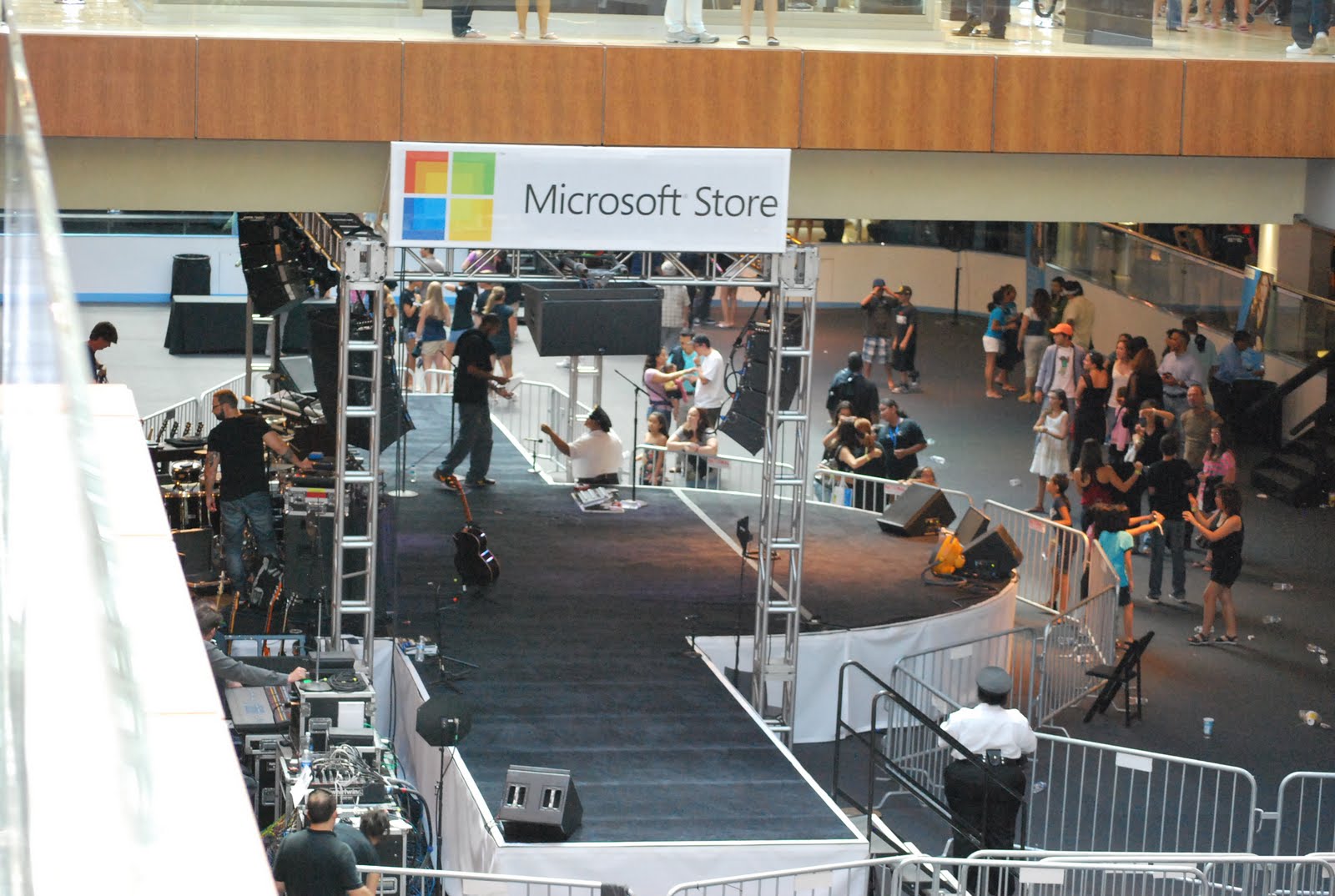 Kelly Clarkson held a concert in the Galleria on Saturday for the Grand Opening of the Microsoft Store. The tickets were free but the first 100 people received a special glittery wrist band which allowed them to attend a Meet and Greet with Kelly after the concert.